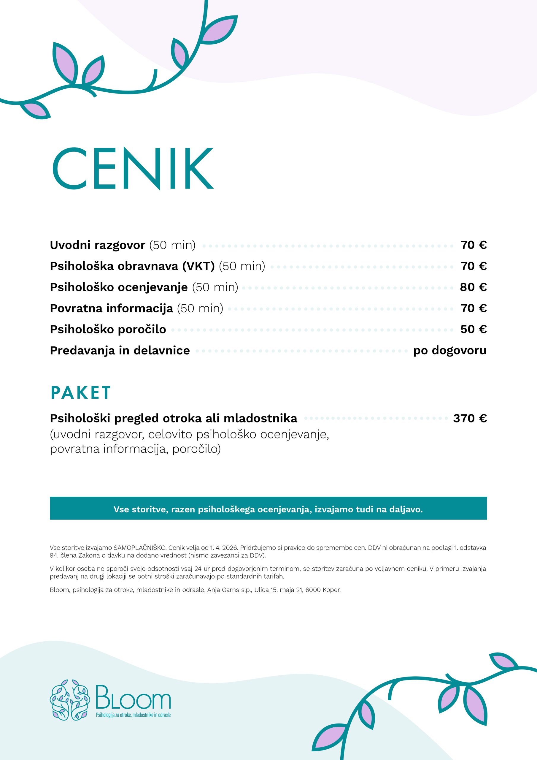 Bloom, psihologija za otroke, mladostnike in odrasle, Anja Gams s.p.